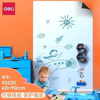 首页 > 办公用品 > 教具 > 得力 90*60cm白板软磁铁自粘贴可擦写墙贴/画板小黑板贴