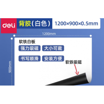 首页 > 办公用品 > 教具 > 得力(deli)软铁白板 家用教学白板 办公会议白板 8717 90*120cm