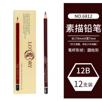 老人头铅笔素描笔lotory画材速写炭笔碳笔软中硬软炭美术生专用2比套装碳铅 12B【12支/盒】 老人头