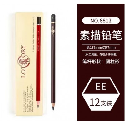 老人头铅笔素描笔lotory画材速写炭笔碳笔软中硬软炭美术生专用2比套装碳铅 EE【12支/盒】 老人头
