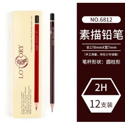 老人头铅笔素描笔lotory画材速写炭笔碳笔软中硬软炭美术生专用2比套装碳铅 2H【12支/盒】 老人头