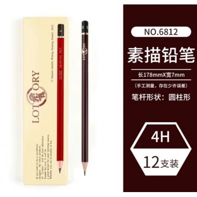 老人头铅笔素描笔lotory画材速写炭笔碳笔软中硬软炭美术生专用2比套装碳铅 4H【12支/盒】 老人头