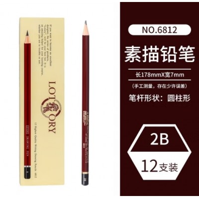 老人头铅笔素描笔lotory画材速写炭笔碳笔软中硬软炭美术生专用2比套装碳铅 2B【12支/盒】 老人头