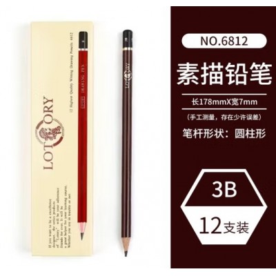 老人头铅笔素描笔lotory画材速写炭笔碳笔软中硬软炭美术生专用2比套装碳铅 3B【12支/盒】 老人头
