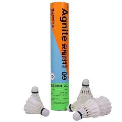 首页 > 体育设备设施 > 球类设备 > 安格耐特/Agnite F2209羽毛球羽毛球稳定弹性软木头耐打不易烂鸭毛学生训练 (白色)(12只/筒)