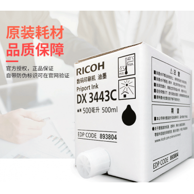 首页 > 办公用品 > 墨水 > 理光(Ricoh)DX3443C(500cc/瓶*5支)黑油墨 适用于DX3443C/DD3344C