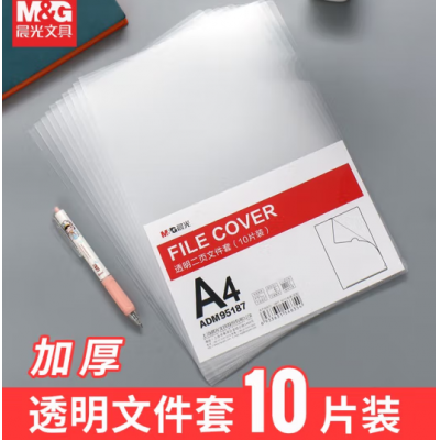 首页 > 办公用品 > 文具 > 晨光(M&G) ADM94515透明L型单页夹单片夹文件夹 L形软胶套资料保护夹防尘防水 A4单片夹(10个/包)ADM95187