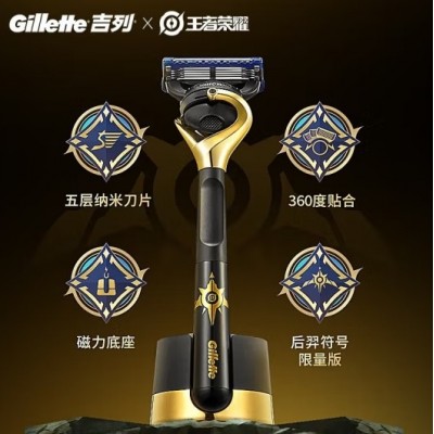 吉列锋隐5致顺王者荣耀版联名致顺2刀头1刀架+底座