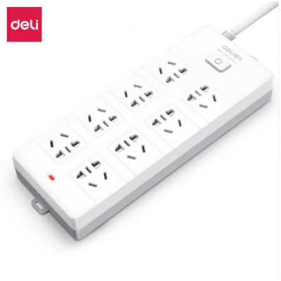 得力18170-03插座_8组_3米_PVC袋装(白)(只)