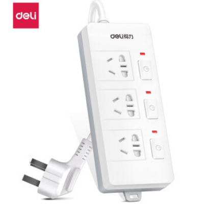 得力3985插座插排_3组_3米_PVC袋装(白)(只)