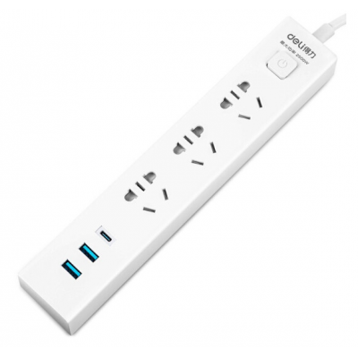 得力18290插排插座 3组+2U+1C 1.8米 彩盒装(白)(只)