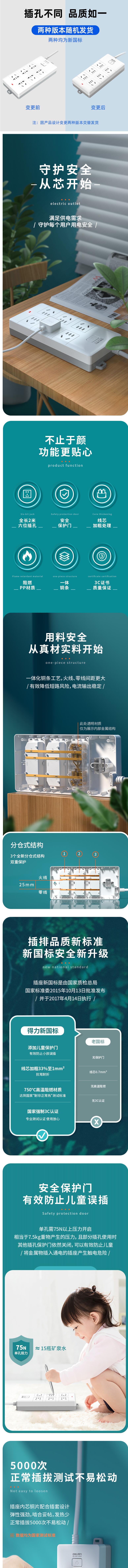 首页 > 建筑建材 > 开关插座 > 得力(deli)18260 总控 6位2米线长 插排/插线板/接线板/排插