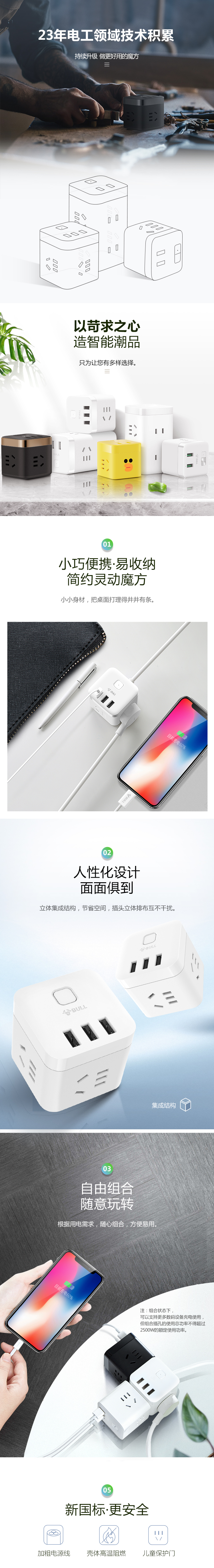 公牛 GN-U303WH (黑色) 无线魔方 3USB接口+3五孔