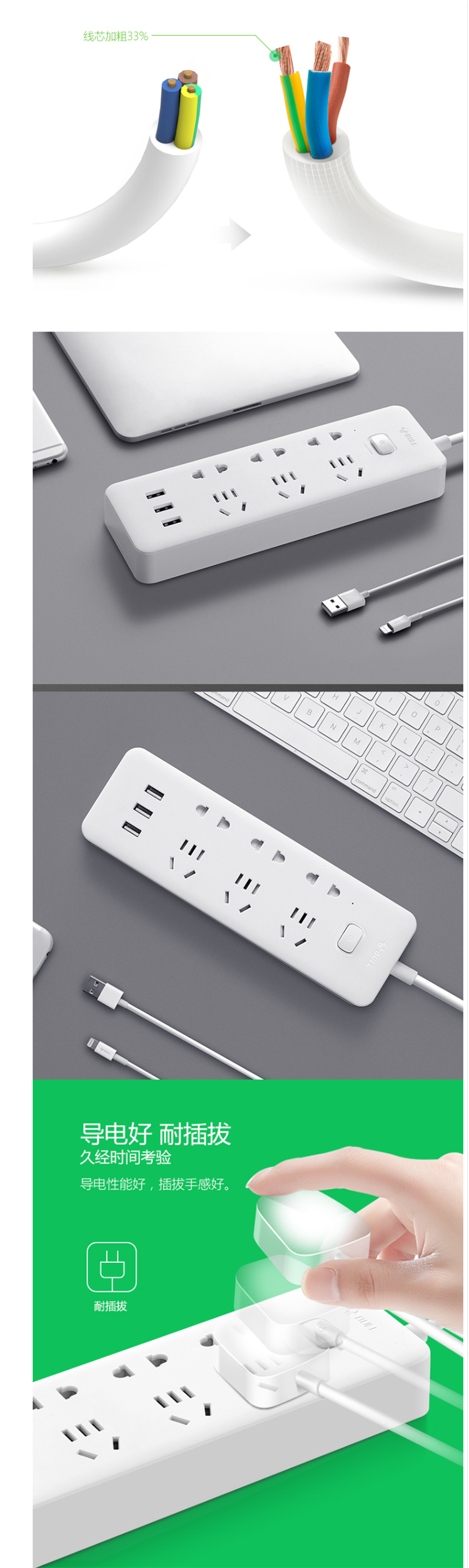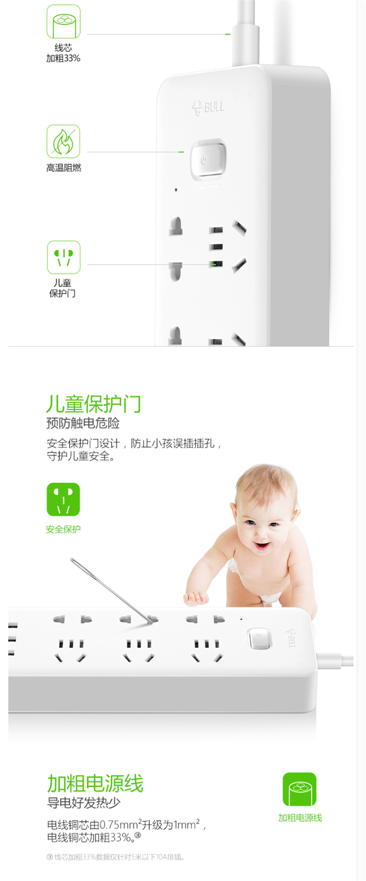 首页 > 建筑建材 > 开关插座 > 公牛(BULL)小白USB插座拖线板2USB排插3USB插座UUD122/UUB126 GN-UUB126 3米