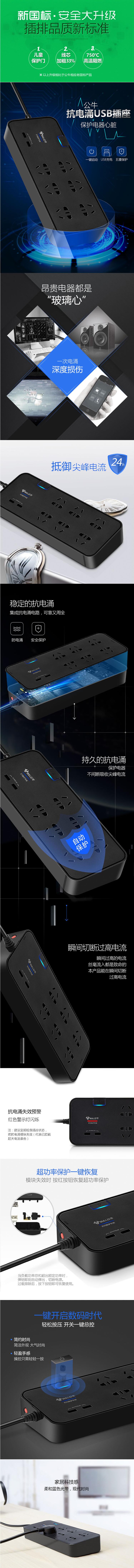 首页 > 建筑建材 > 开关插座 > 公牛 GN-H306U接线板 3米线 6位+2USB总控 抗电涌插座防雷插排