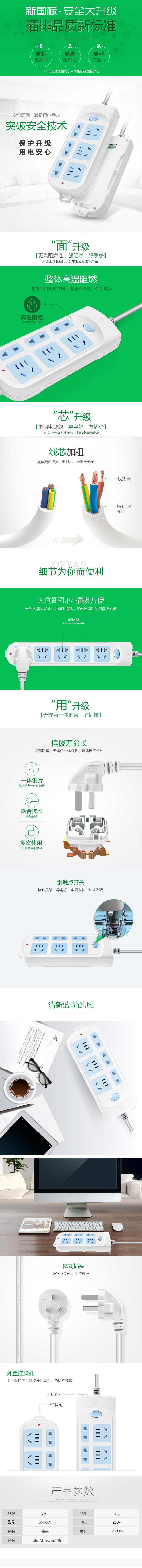 公牛(BULL)新国标插座/插线板/插排/接线板 GN-609 6位总控3米