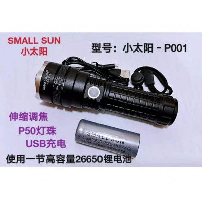 小太阳P001伸缩调焦USB充电P50灯芯超亮户外垂钓夜骑锂电强光手电