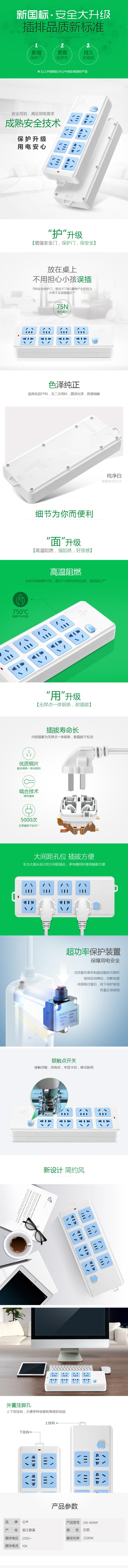 首页 > 建筑建材 > 开关插座 > 公牛 新国标无线插座/超功率过载保护/插线板/排插/接线板 8位总控无线 GN-604W