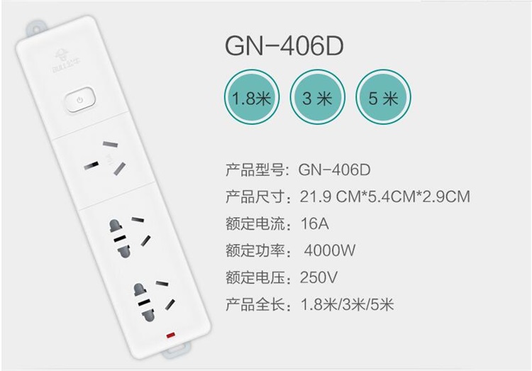 首页 > 建筑建材 > 开关插座 > 公牛(BULL) 10A转16A空调专用插座插线板大功率热水器取暖器插排转换器 16a配10a小插头 3插位3米GN406D