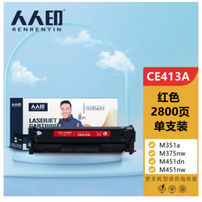 首页 > 办公用品 > 鼓粉盒 > 人人印CE413A 305A红色易加粉硒鼓适用惠普HP M351a M375nw M451dn M451nw M475dn CF380A佳能CRG-318CRG-418