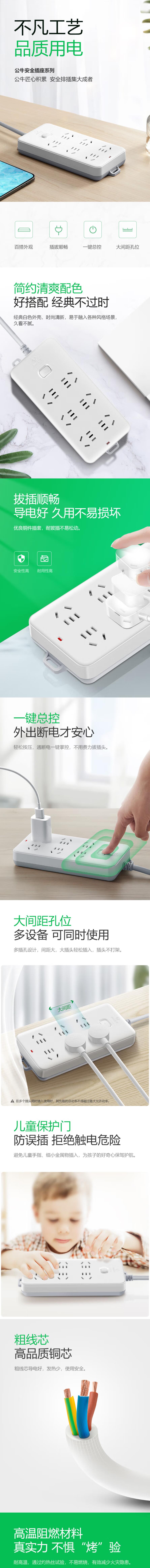首页 > 建筑建材 > 开关插座 > 公牛GN-109K 10米线 6位总控移动插排 插座