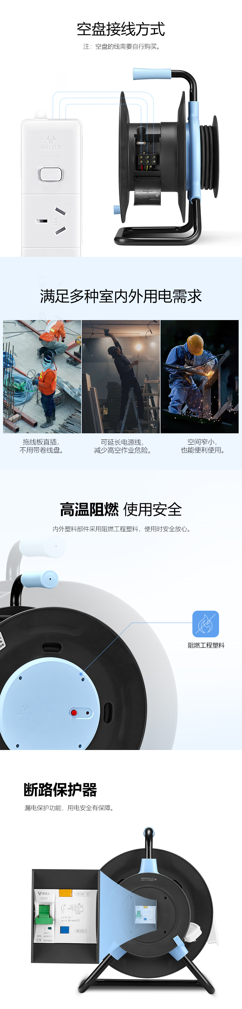 公牛(BULL)804S无线 电缆盘,不带线 (可缠50米线)