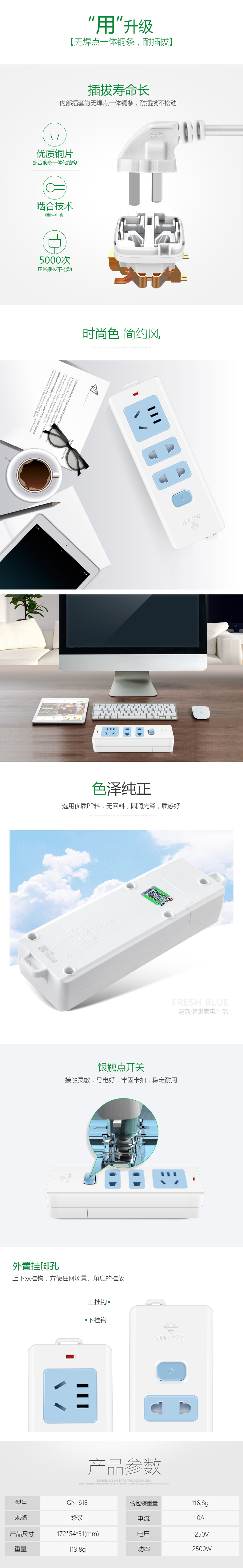 首页 > 建筑建材 > 开关插座 > 公牛(BULL) GN-618 不带电源线 无线 插座 无线接线板3位带开关多功能排插插线板拖线板