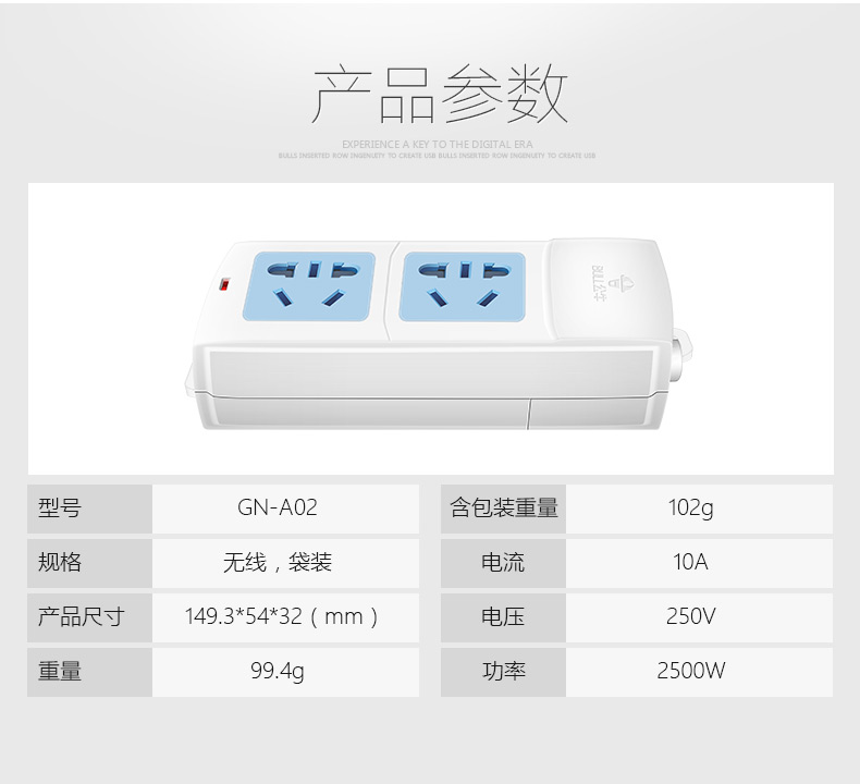 GN-A02  不带电源线  无线  10A250V  多位插座