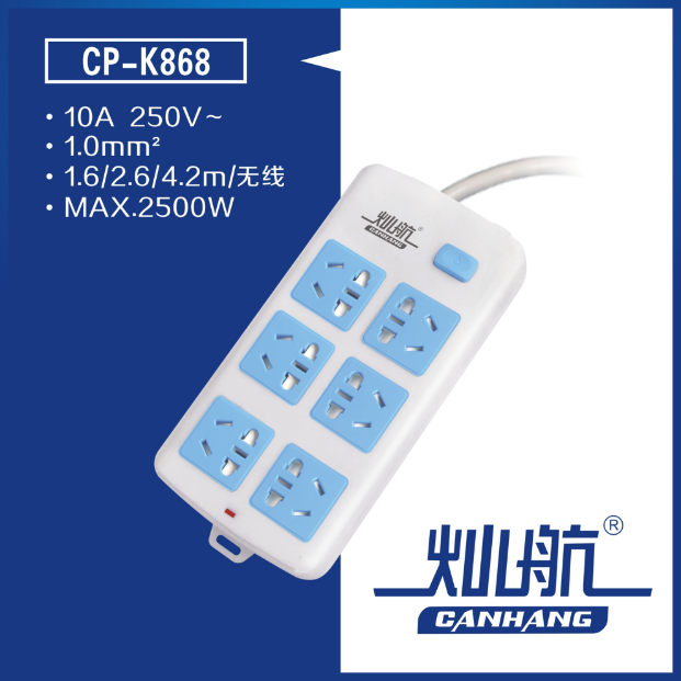 首页 > 建筑建材 > 开关插座 > 灿航 CP-K868X/2.6米 多位插座(一开+6个五孔)