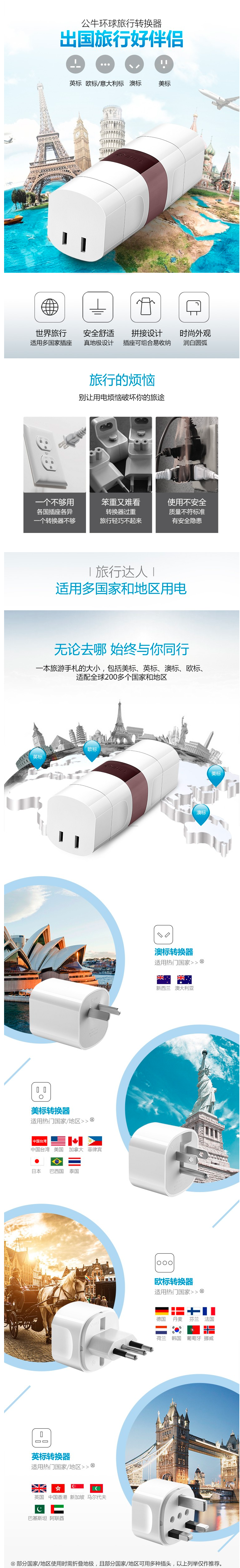 公牛 GN-L07U环球旅行USB转换器/转换插头 USB转换器