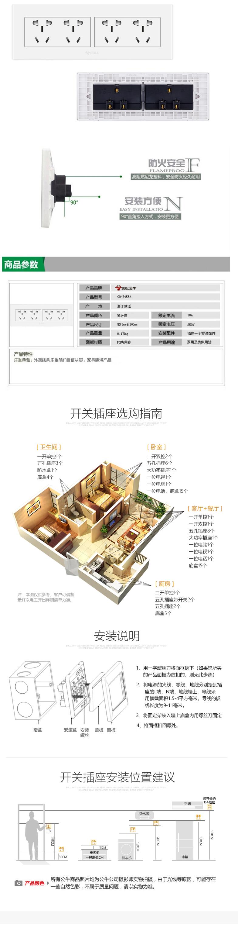 首页 > 建筑建材 > 开关插座 > 公牛(BULL) G04Z456A 开关插座 多功能118型插座 20孔 电源插座面板 (底盒需另购)