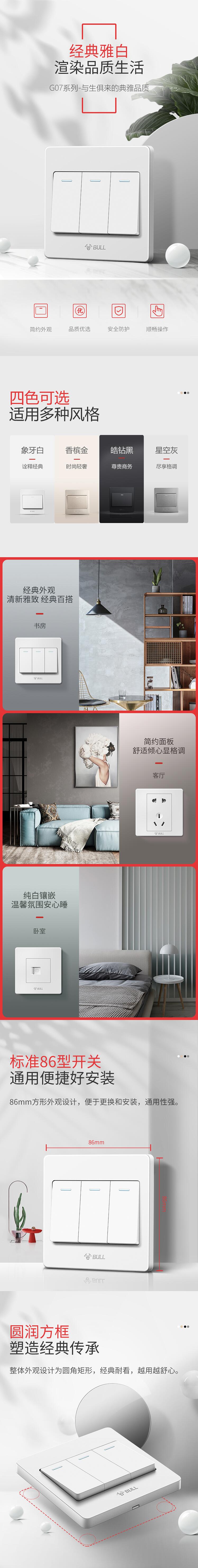 首页 > 建筑建材 > 开关插座 > 公牛 开关插座 三开单控开关 86型 G07K311C