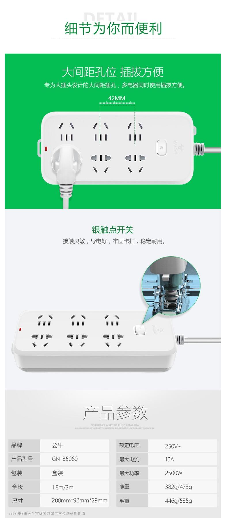 首页 > 建筑建材 > 开关插座 > 公牛 GN-B5060 六位总控开关全长1.8米