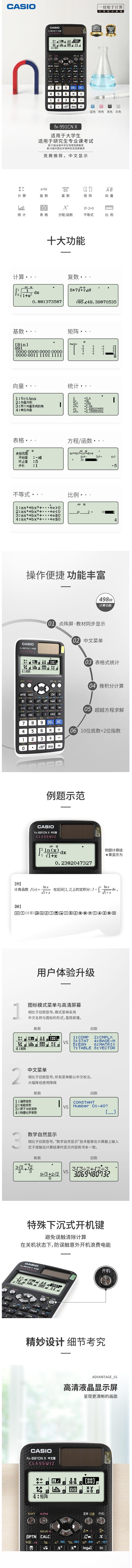 首页 > 办公设备 > 计算器 > 卡西欧(CASIO)FX-991CN-BU 蓝色款 科学函数计算器