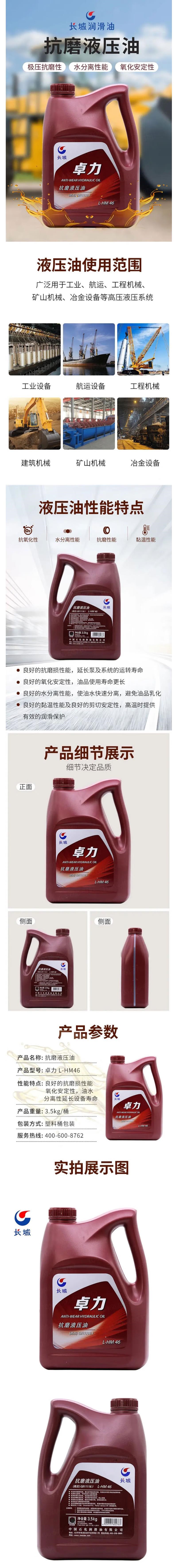 长城 卓力 L-HM 46号 高压 抗磨液压油 3.5kg/4升