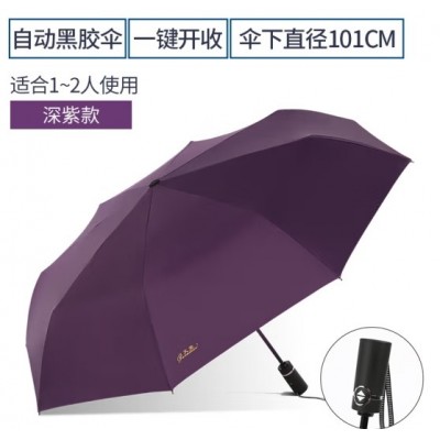 天堂伞雨伞三折全自动折叠伞黑胶防晒折叠雨伞太阳伞大号双人简约晴雨两用男女学生防风伞-紫色