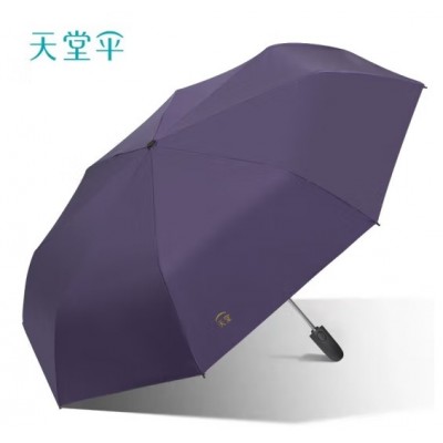天堂雨伞加大加厚加固十骨黑胶三人大雨伞防晒三折叠双人大伞晴雨伞-深紫