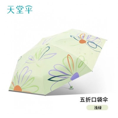 首页 > 建筑建材 > 其他防护用品 > 天堂雨伞防晒防紫外线太阳伞手动便携折叠黑胶遮阳伞晴雨两用雨伞女- 浅绿(五折雨伞)