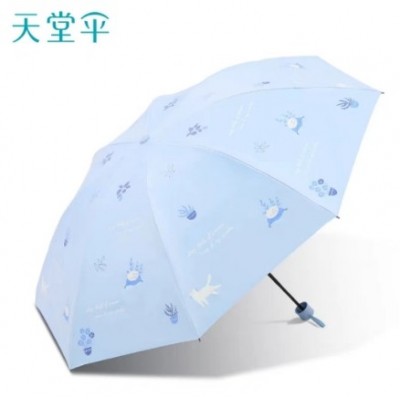 首页 > 建筑建材 > 其他防护用品 > 天堂雨伞轻小便携折叠三折晴雨两用雨伞黑胶防晒防紫外线遮阳伞女-天蓝雨伞