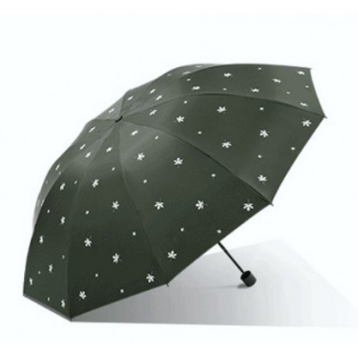天堂雨伞33760E片片枫叶防紫外线遮阳伞61CM*10K黑胶晴雨两用伞-军绿色雨伞