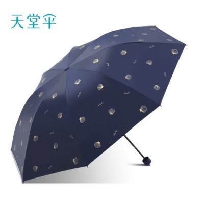 天堂雨伞胶囊伞迷你五折口袋伞防晒防紫外线遮阳伞晴雨伞两用男女海之贝-黛蓝雨伞