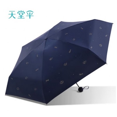 天堂雨伞胶囊伞迷你五折口袋伞防晒防紫外线遮阳伞晴雨伞两用男女金冠风尚-黛蓝雨伞
