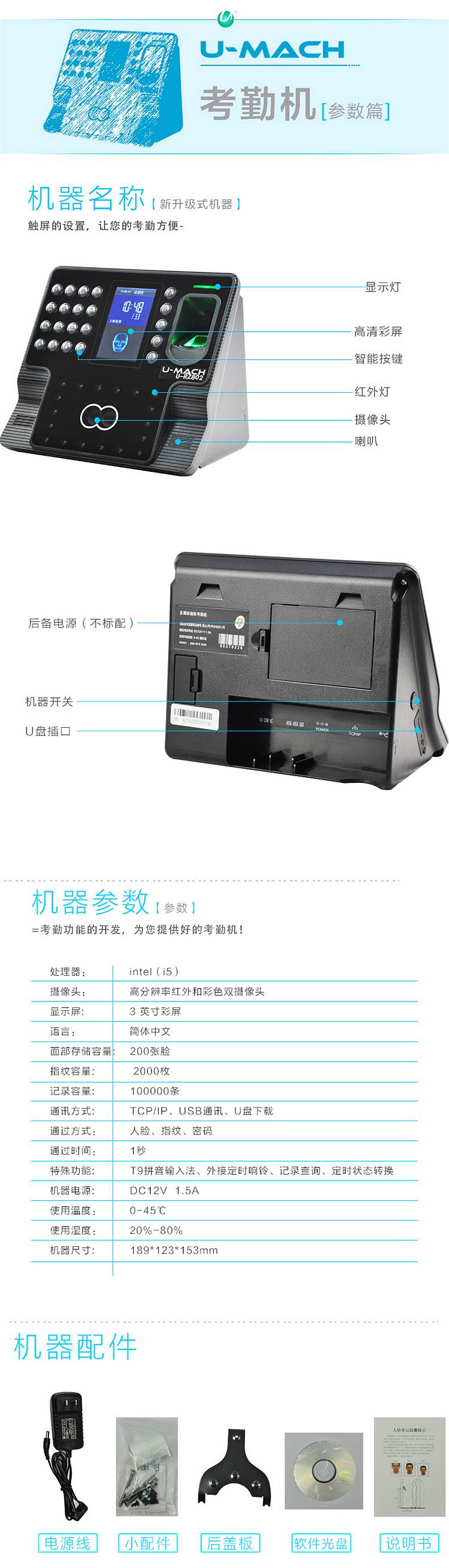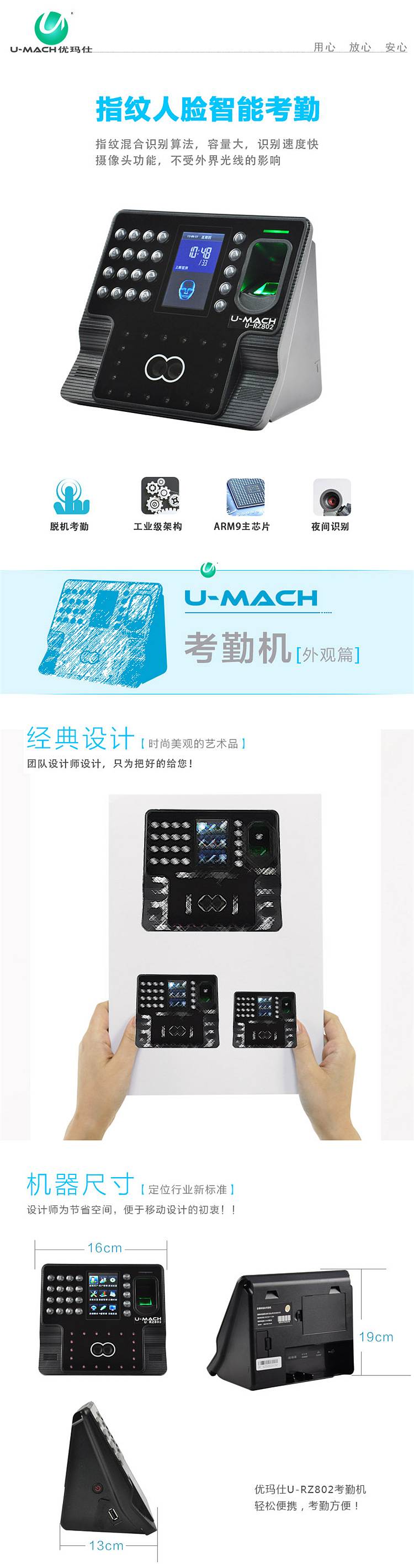 优玛仕 U-RZ802 人脸考勤机 (单位:台)