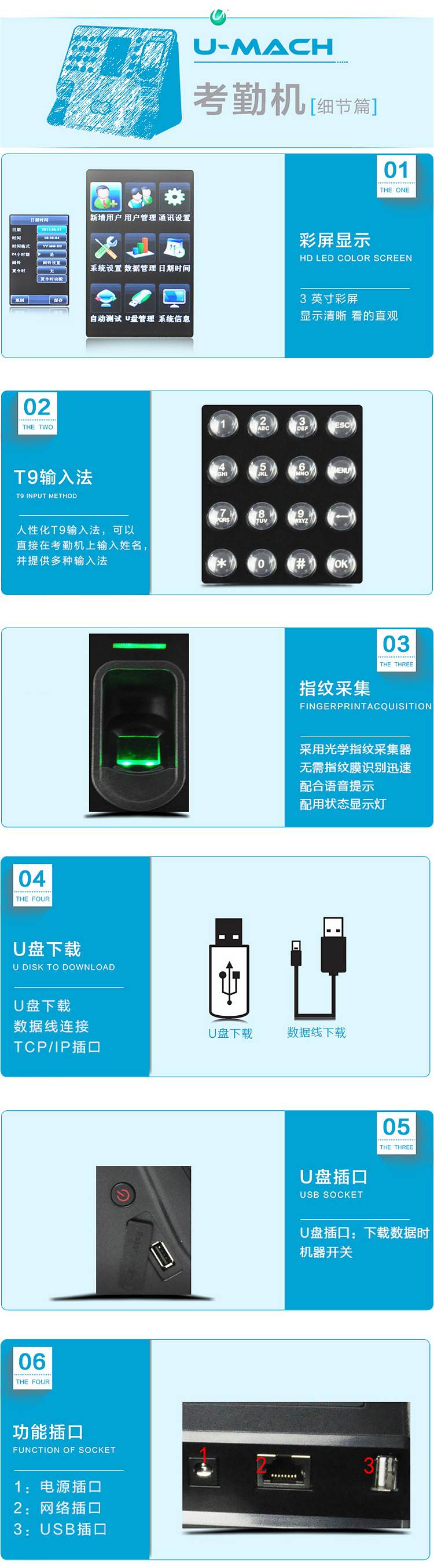 • 通讯方式:TCP/IP、USB通讯、U盘下载