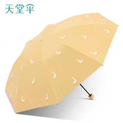 天堂雨伞防晒防紫外线遮阳伞太阳伞女便携折叠黑胶晴雨两用伞雨伞女-奶黄色雨伞