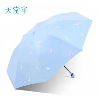 天堂雨伞防晒防紫外线遮阳伞太阳伞女便携折叠黑胶晴雨两用伞雨伞女-天蓝色雨伞