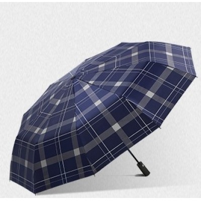 天堂雨伞三折全自动雨伞双人大伞格纹简约黑胶遮阳伞折叠晴雨两用雨伞-深蓝色雨伞