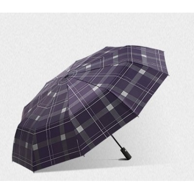 天堂雨伞三折全自动雨伞双人大伞格纹简约黑胶遮阳伞折叠晴雨两用雨伞-深紫色雨伞