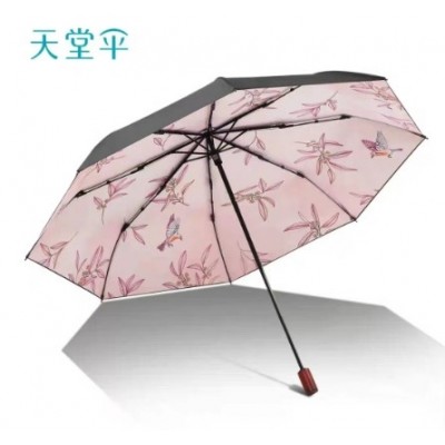 天堂雨伞黑胶手动三折叠遮阳伞晴雨伞防晒防紫外线太阳伞成人女礼赠雨伞-浅粉