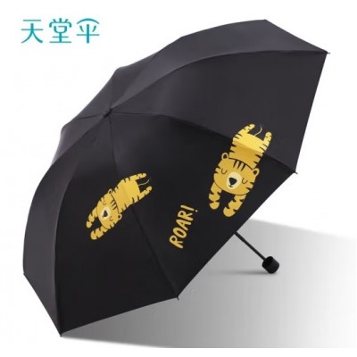 天堂雨伞33822E两只老虎雨伞防晒便携遮阳伞小巧三折叠晴雨两用伞男女- 黑色雨伞